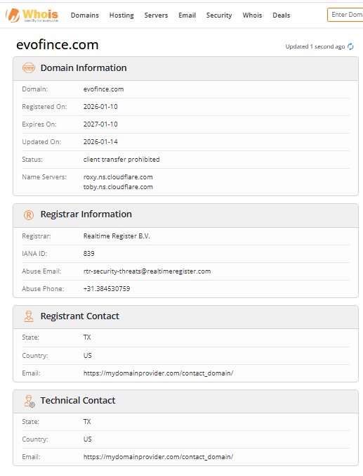 Whois lookup: Evofince