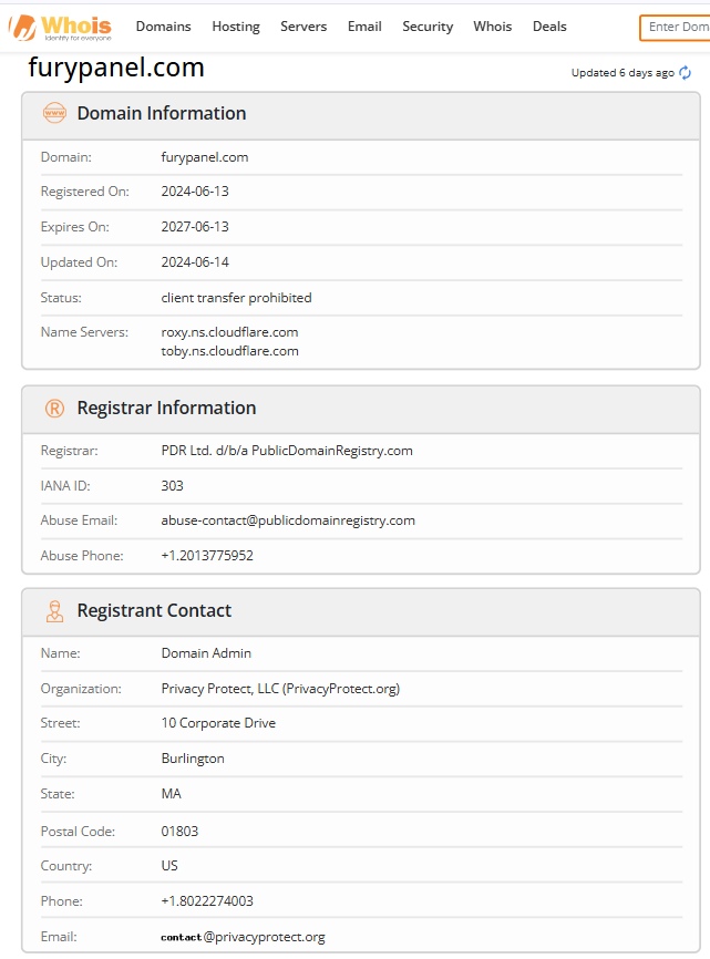 | Domain | furypanel[.]com | Confirmed |