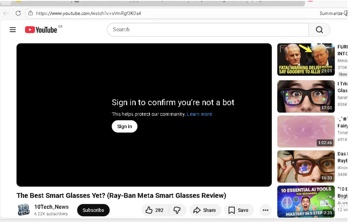 After clicking the “Download” button on spiderfoot.org, the user was redirected to a YouTube page rather than an official repository or release source. The page displayed a “Sign in to confirm you’re not a bot” message and did not provide a direct software download. This behavior breaks the expected software distribution path and introduces unrelated third-party infrastructure into the process.