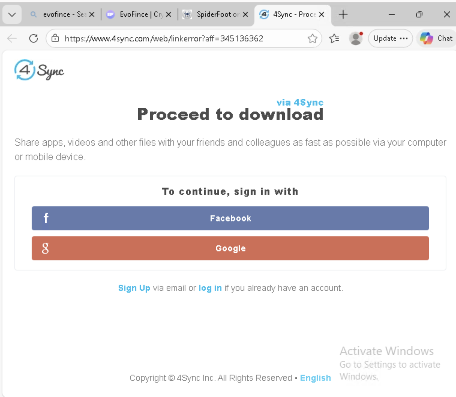 spiderfoot[.]org 4sync[.]com www[.]4sync[.]com/web/linkerror?aff=345136362